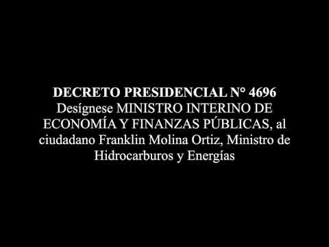 Desígnese MINISTRO INTERINO DE ECONOMÍA Y FINANZAS PÚBLICAS, al ciudadano Franklin Molina Ortiz, Ministro de Hidrocarburos y Energías, mientras dure la ausencia del titular.